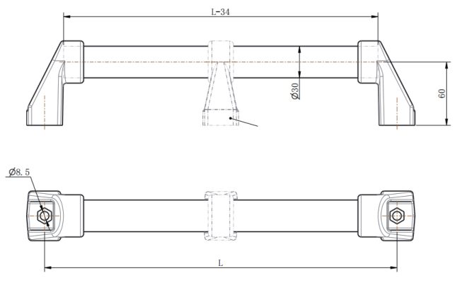 Material: Rubber sleeve, steel pipe, black PA fixture