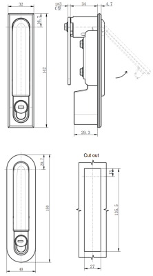Material: Zinc alloy housing,handle and insert,Steel button and cam