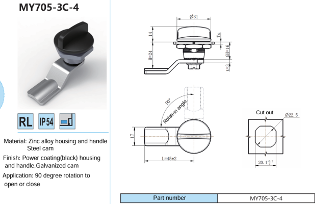 Finish: Power coating(black) housing and handle,Galvanized cam