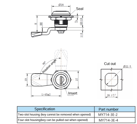 Application: 90 degree rotation toSteel cam and insert,Galvanized cam open or close