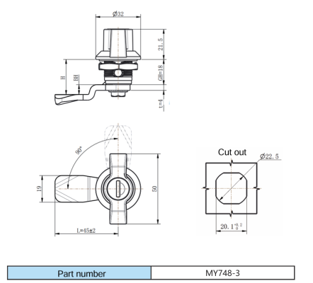 Finish: Power coating(black) housing, Galvanized cam